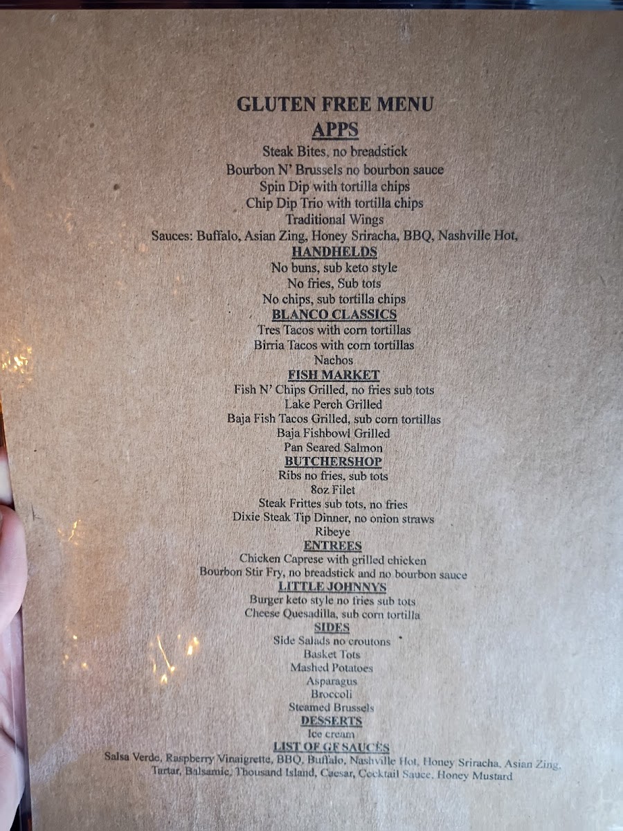 Crispy brussels, bourbon sauce, bacon, crushed hazelnuts, bleu cheese crumbles